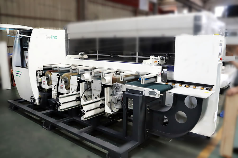 此設備帶自動進料系統(tǒng),四個面同時打磨,大大提高生產效率。 適用于各種實木、密度板、貼皮板等等直線型(如門邊線、踢腳線、相框等等)、L型的木線和長條木板的規(guī)則面、異形面、平面和曲面的白坯、油漆的打磨、拋光等。