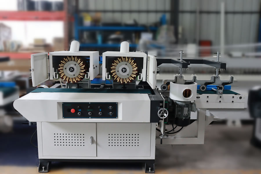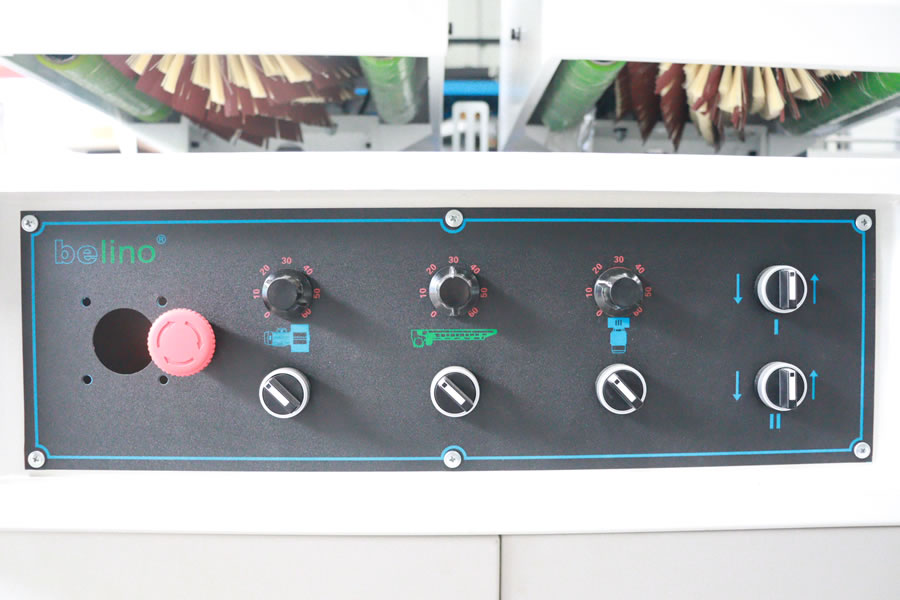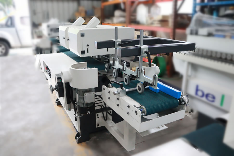 此設(shè)備帶自動進料系統(tǒng),三個面同時打磨,大大提高生產(chǎn)效率。 適用于各種實木、密度板、貼皮板等等直線型(如門邊線、踢腳線、相框等等)、L型的木線和長條木板的規(guī)則面、異形面、平面和曲面的白坯、油漆的打磨、拋光等。