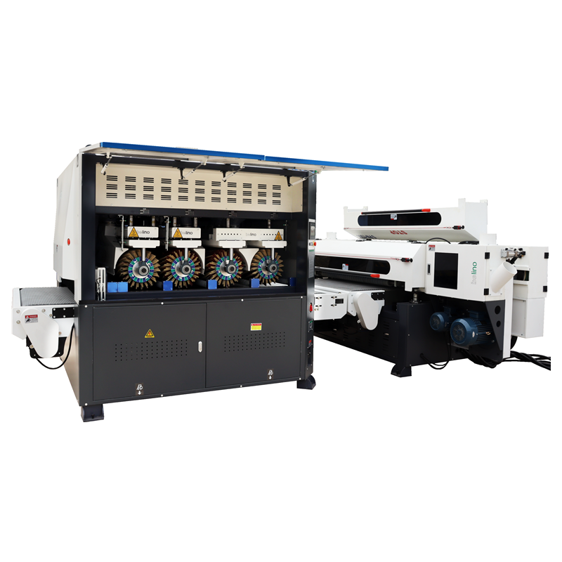 琴鍵式砂光系統搭配高配的獨立式襯帶結構,通過自動調節琴鍵壓墊單元的削砂力度,使產品不會出現砂穿或漏砂現象。輸送臺帶真空吸附功能。 解決傳統平面砂光機(即精準定厚砂光)對于厚度不均的木料,一砂就穿,一砂就漏的難題。 獨特的雙橫帶結構配合常規異形砂光機對工件進行全方位的精細打磨,拋光使工件的砂光紋理更自然,平整度更高、表面更光滑,從而有效地減小油漆的消耗,起到節省油漆的作用。